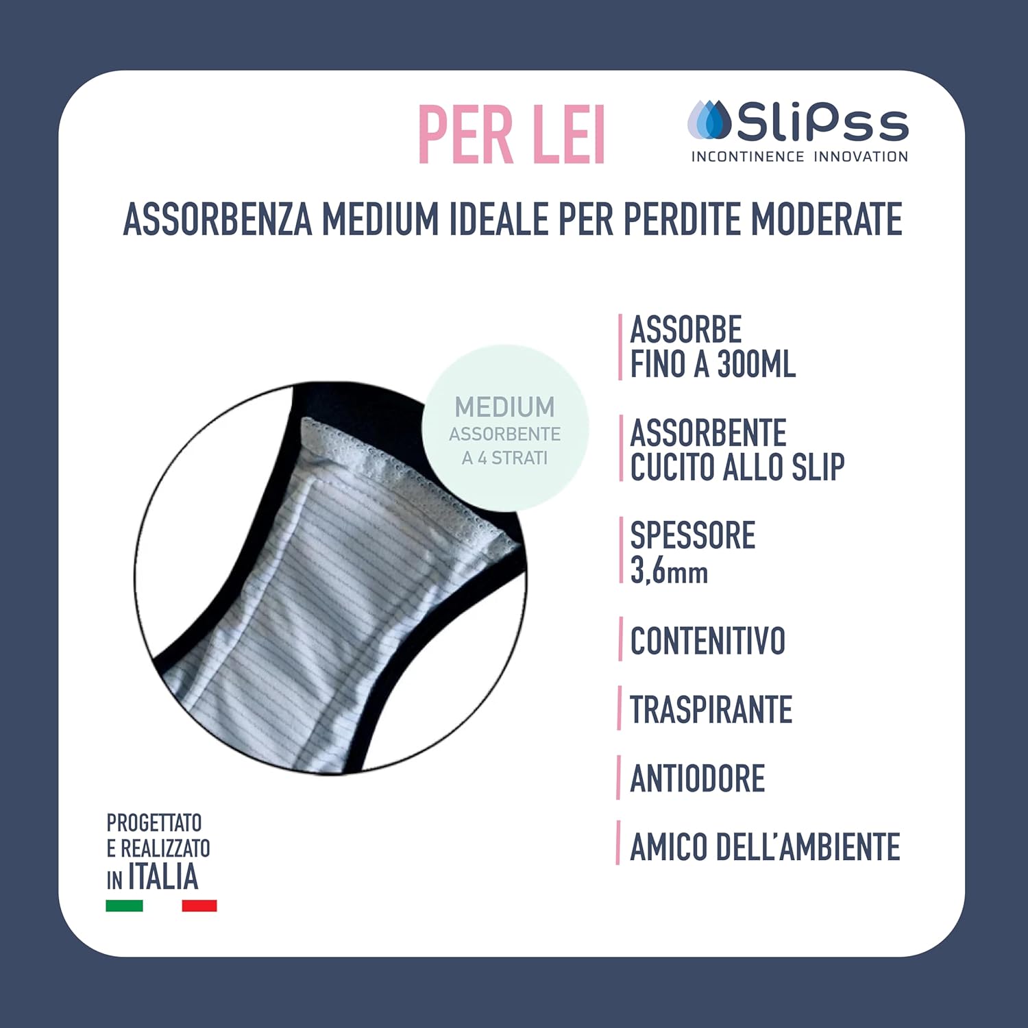 SAY GOODBYE TO STAINS: With 3 absorbent layers sewn internally and non-removable, it is designed for medium intensity leakage, absorbing up to 300ml per day. This way, you can forget about losses that could disrupt your routine.