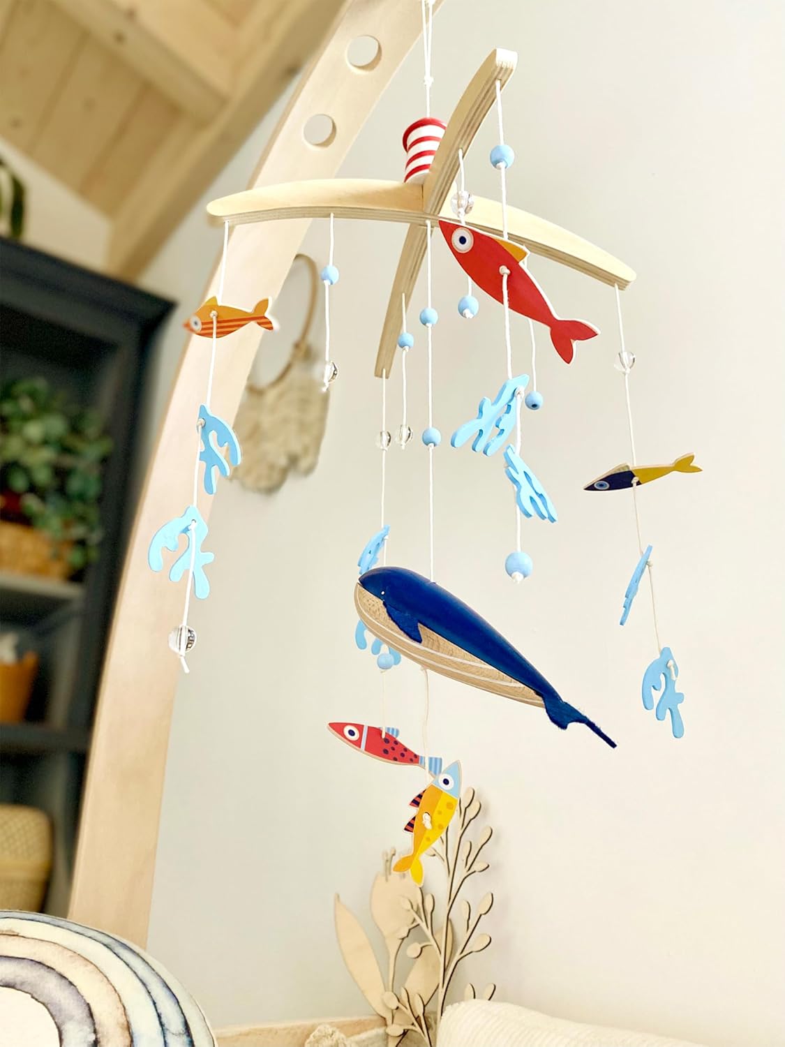 Acrylic beads bubbles, fish, algae and a large whale make the nursery accessory an exciting eye-catcher