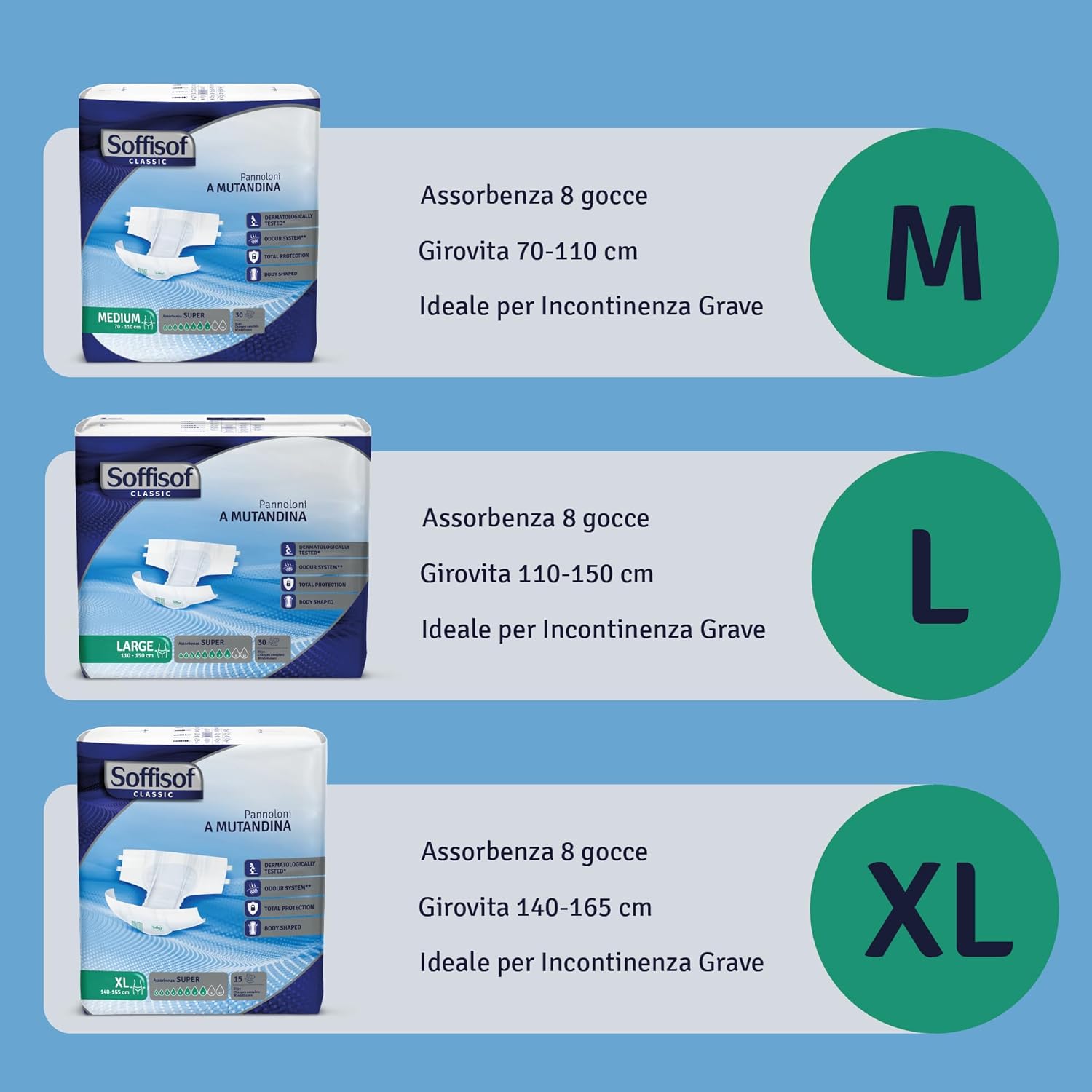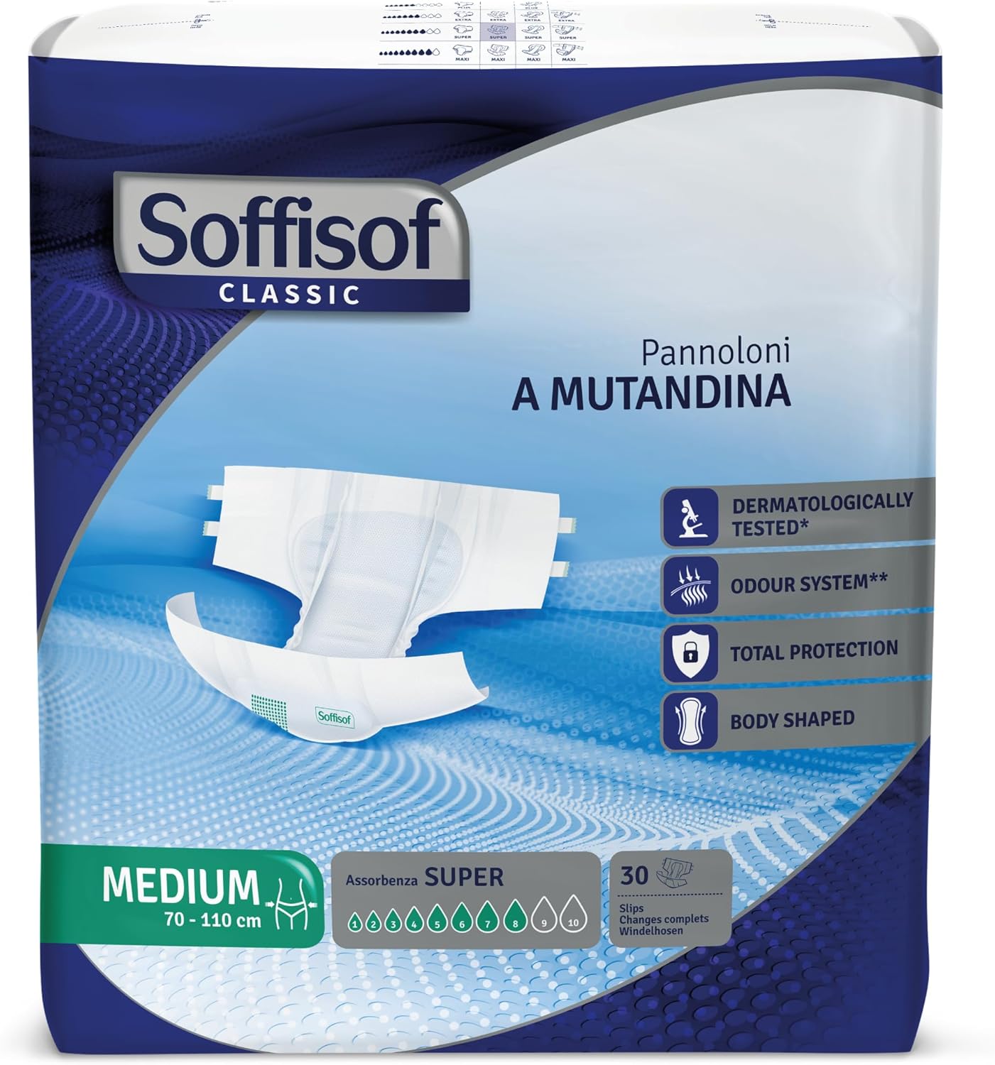 Soffisof Classic Adult Diapers Super M – 30x Adult Nappies – Disposable Incontinence Briefs – Up to 8 Drops Absorbency – for Men and Women