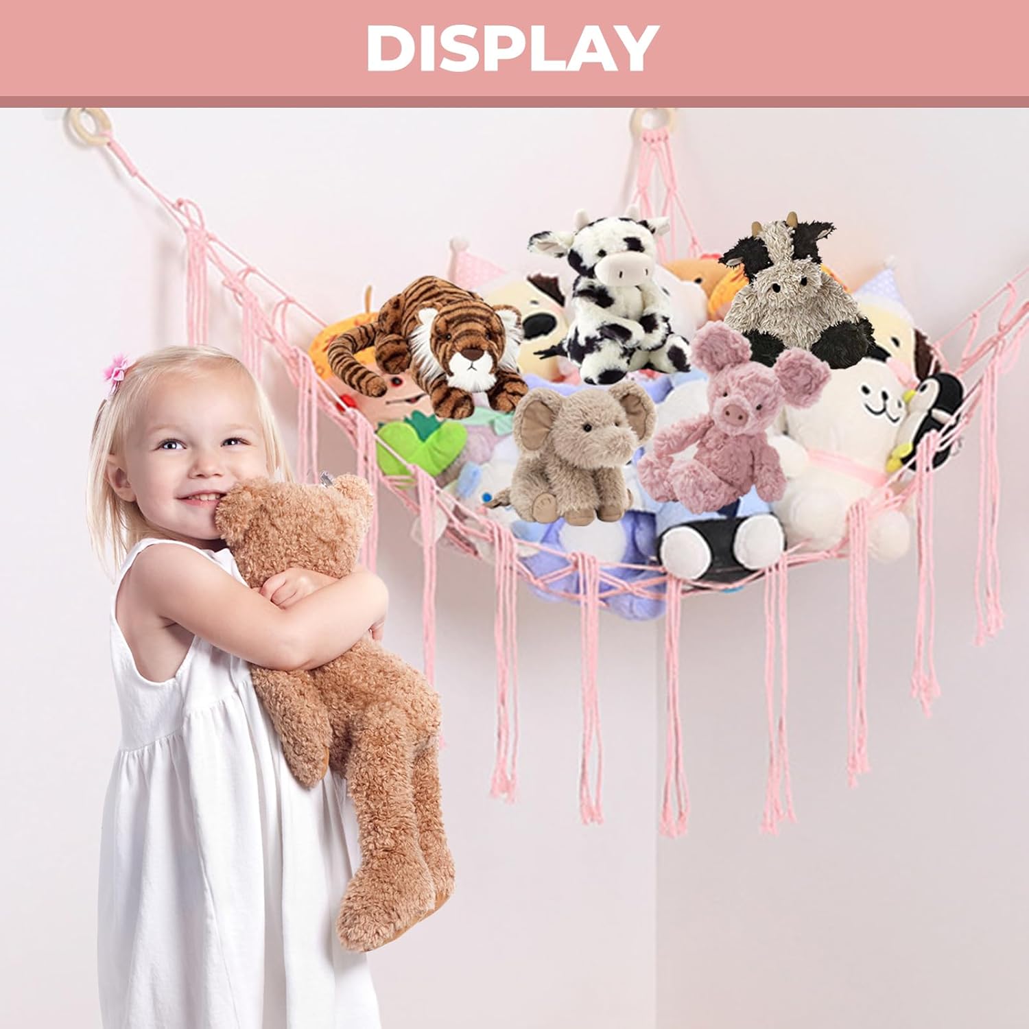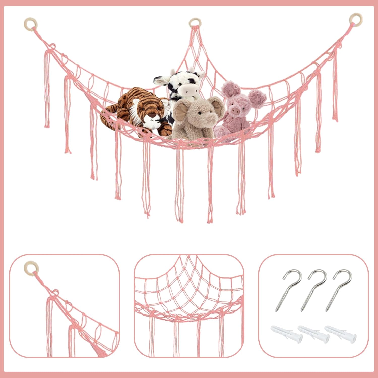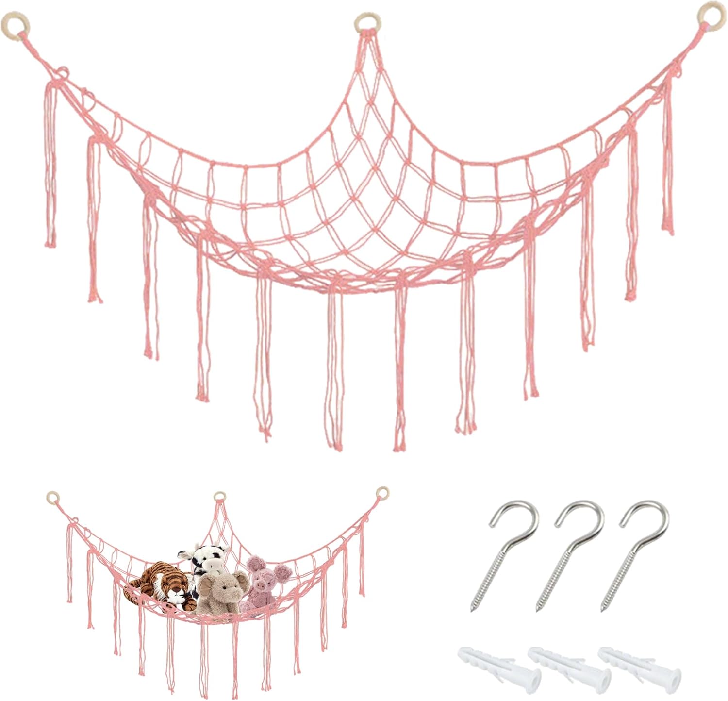 Soft Toy Storage Hammock Net, Stuffed Animals Organizer for Kids Bedroom, Nursery Decoration & Girls Room Accessories (Pink)