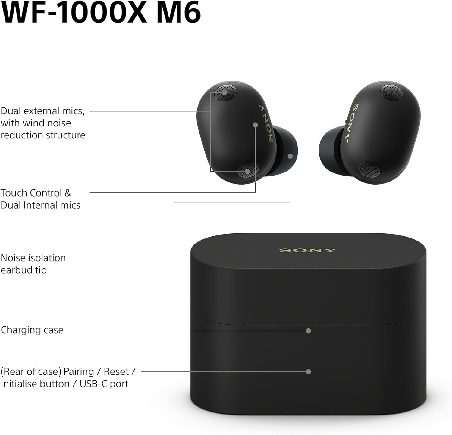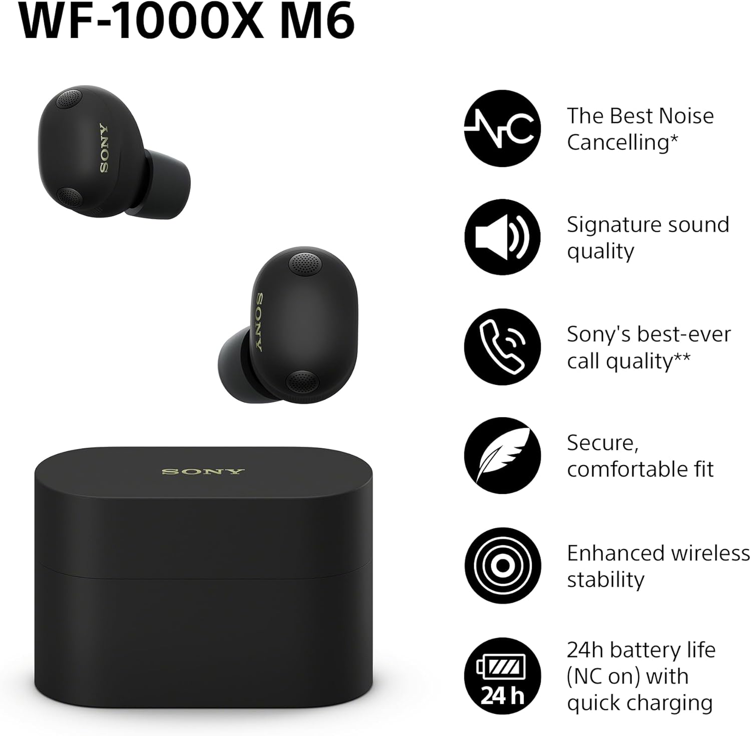 Sony WF-1000XM6 Flagship Wireless Noise Cancelling Earbuds, Bluetooth, In-ear Headphones, Signature Hi-Res Sound, Clear Calls, 10 band EQ, 24 Hr Battery NC On, IPX4, iOS & Android – Black