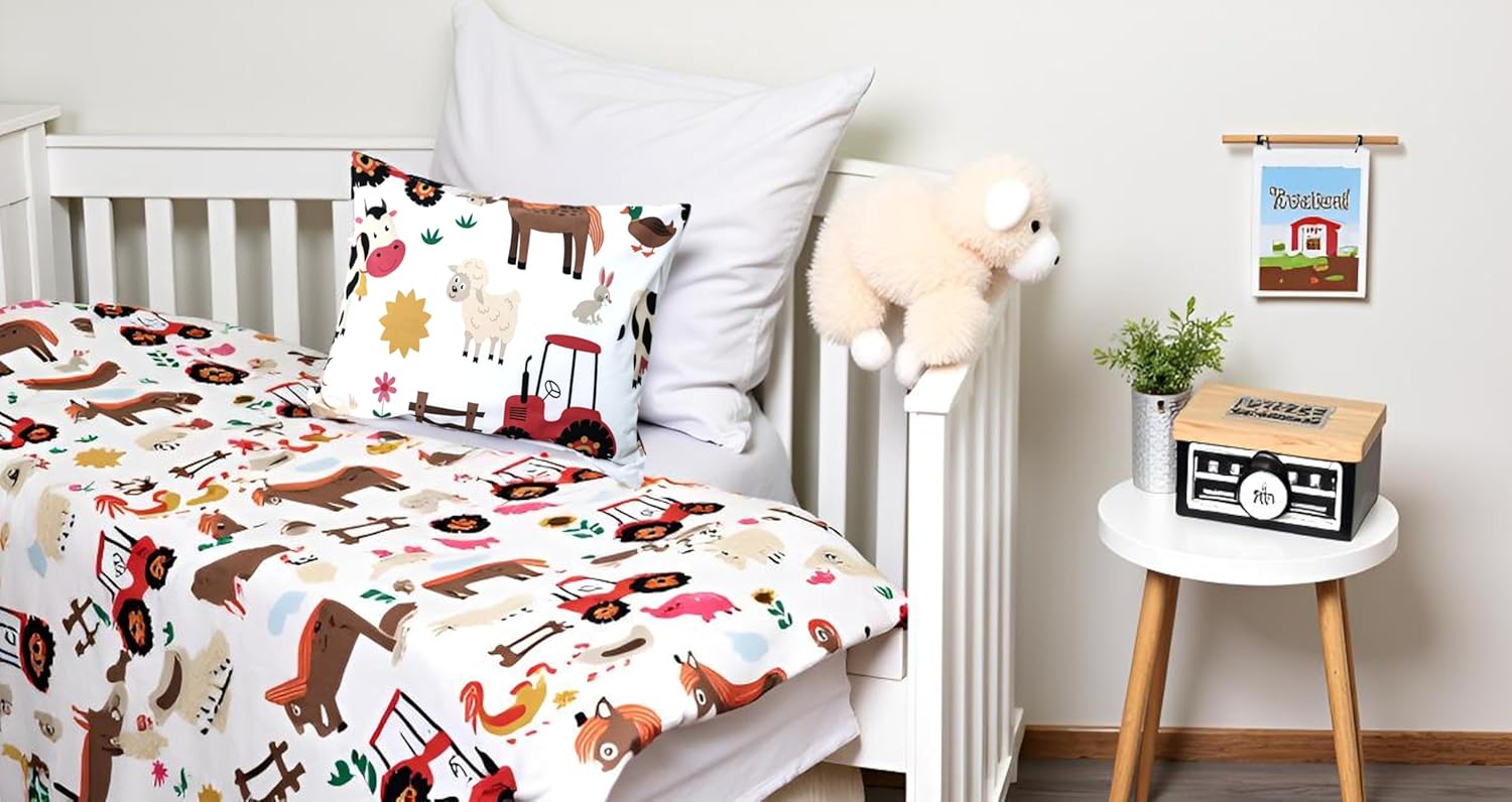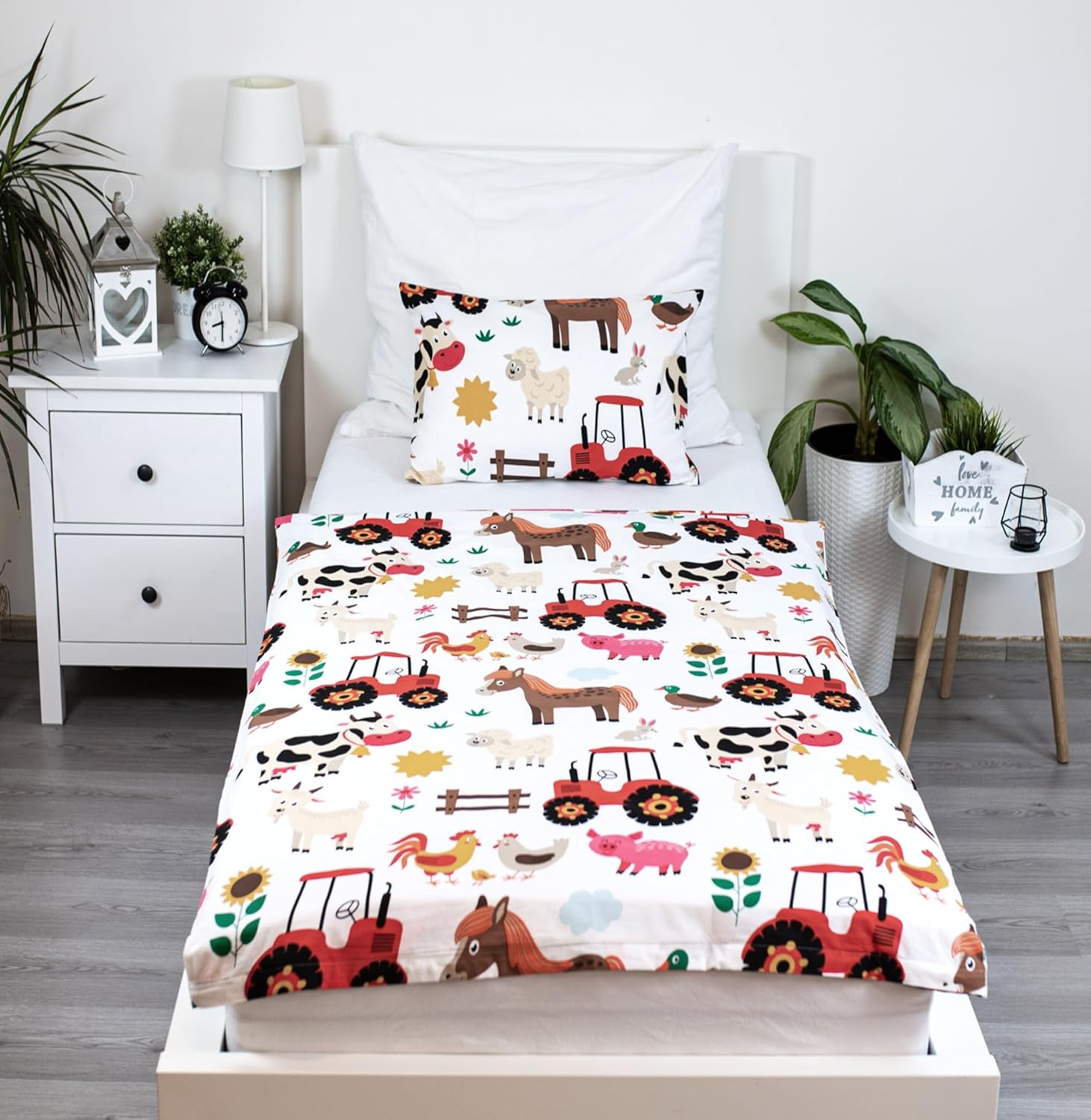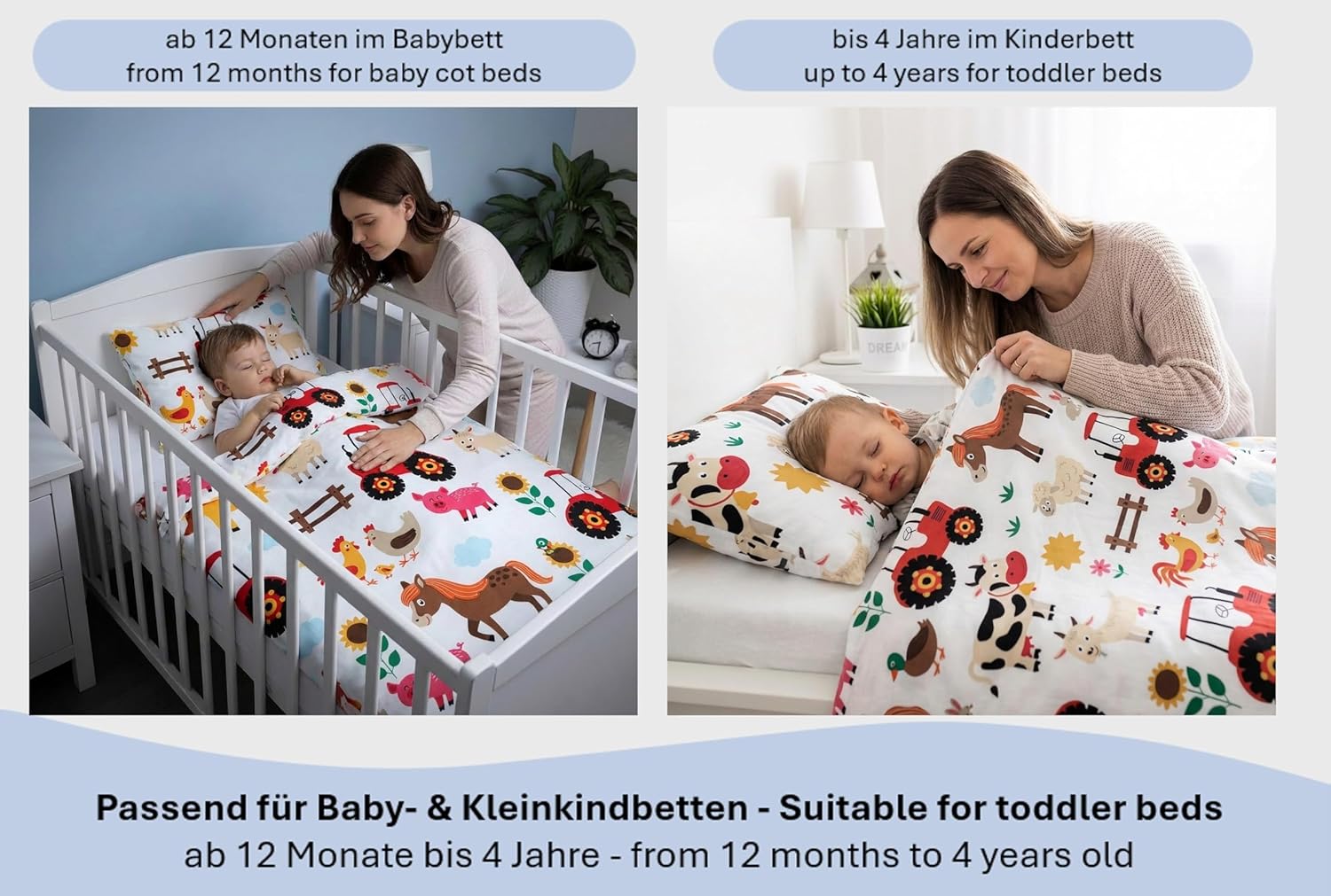 theonoi children's bed linen 100 x 135 + 40 x 60 cm, 2 piece set consisting of duvet cover and pillowcase for baby and toddler bed, 100% cotton, oeko tex, reversible animals & tractor motifTheonoi Children’s Bed Linen 100 x 135 + 40 x 60 cm, 2-Piece Set Consisting of Duvet Cover and Pillowcase for Baby and Toddler Bed, 100% Cotton, Oeko-Tex, Reversible Animals & Tractor Motif