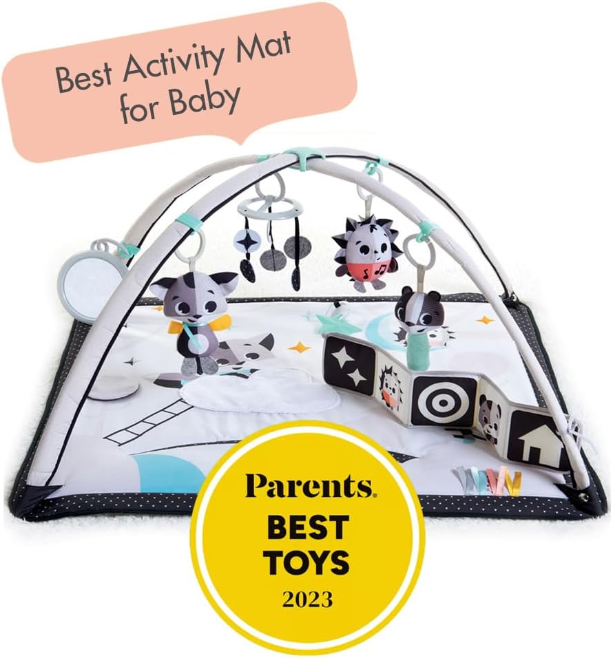 Tiny Love Black & White Gymini, 2-in-1 Musical Baby Play Mat, 0+ Months, Baby Play Gym, 18 Activities, Interactive Musical Toy, High Contrast Book, Adjustable Arches, Magical Tales