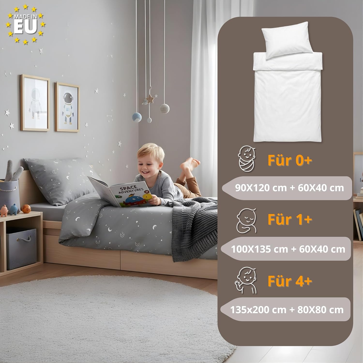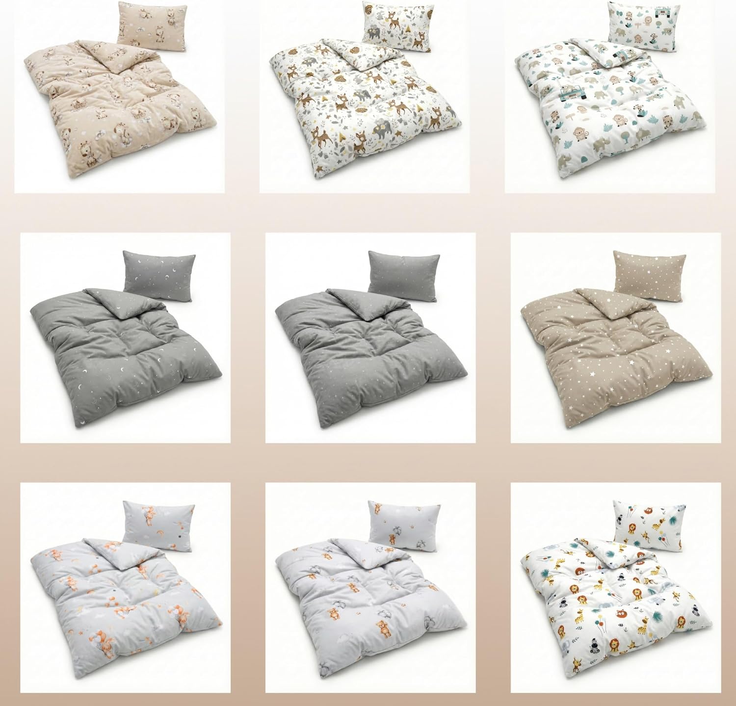🎁 [VERSATILE AND PRACTICAL] – Ideal as a gift idea for new parents. Universal sizes fit cribs, strollers, or can be used as a playmat. Available sizes: crib duvet 135×200, 100×135, 90×120 or 80×80 cm with pillow 80×40, 60×40 or 40×35 cm