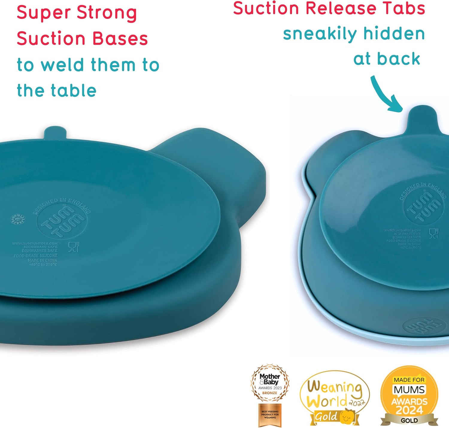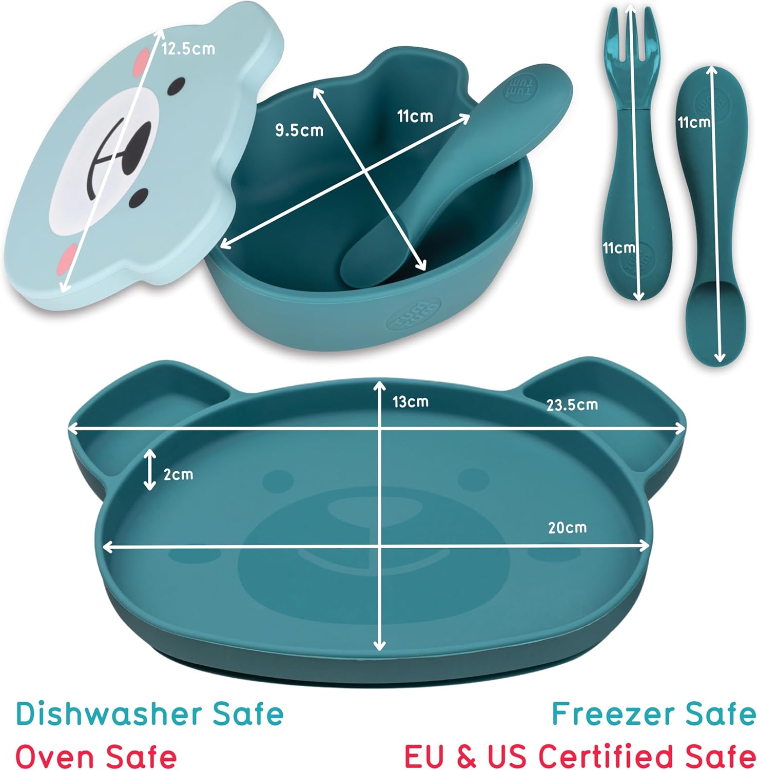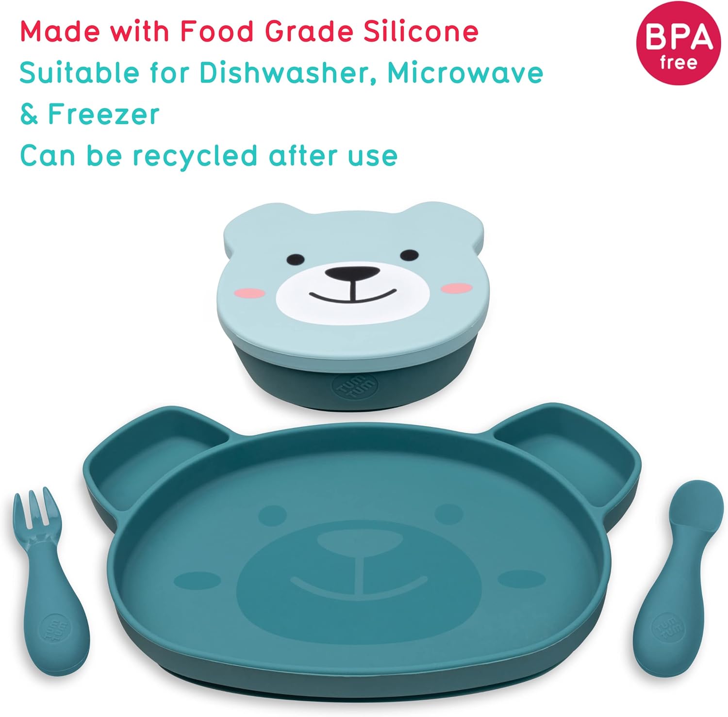 TUM TUM Baby Feeding Set – Baby Feeding Set with Silicone Plate and Bowl and Cutlery for Children, 6 Months+ L’Orso Boris, Blue