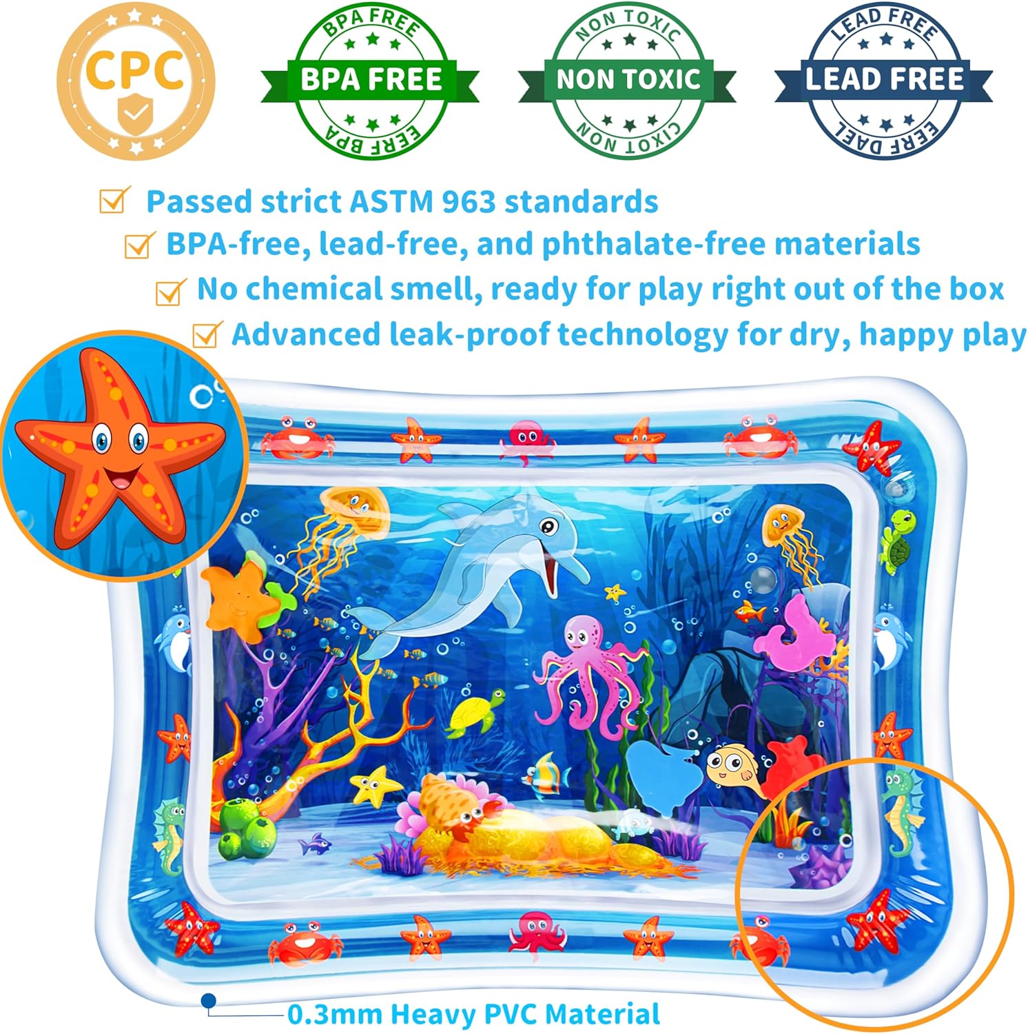 Tummy Time Water Mat, Inflatable for Baby, Infants, Toddlers 3-12 Months, Promotes Development, Baby Gifts Toys