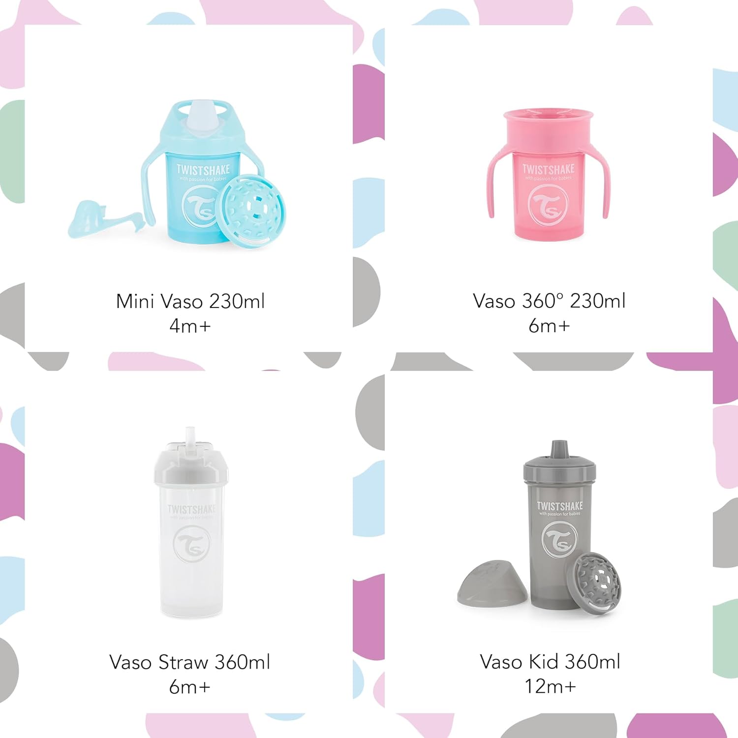 Product details – 1 pack contains 1 x Twistshake 360 cup. Dimensions and weight: 11 x 8.6 x 11 cm, 110 g. Material: PP, TPE and Silicone Colour: white.
