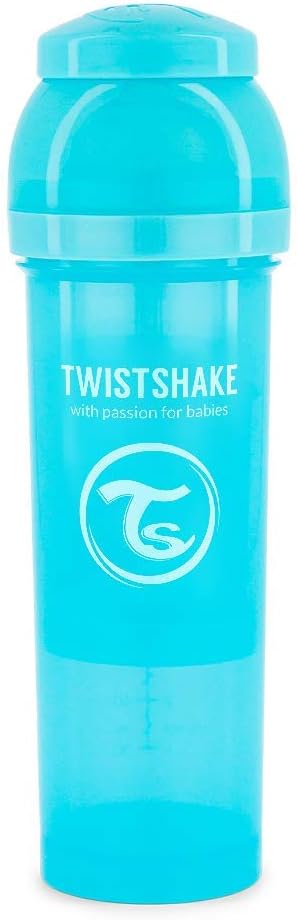 Twistshake Anti-colic Baby Bottle with Milk Powder Container and Mixer – 330 ml | Silicone Nipple with Fast Flow | BPA-Free | Suitable for Babies from 4 Months | Blue