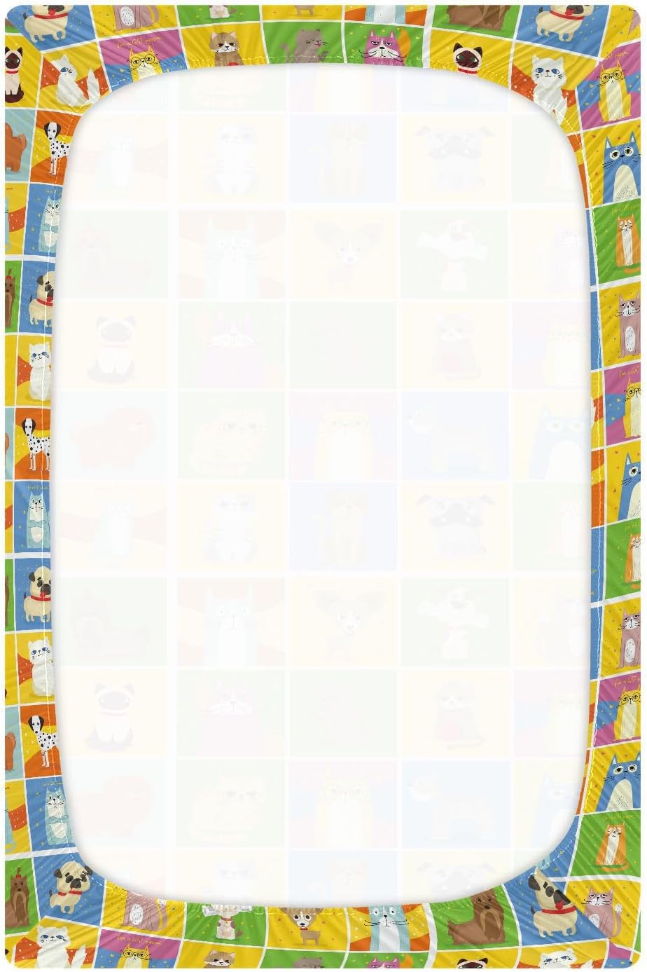 Unisex Fitted Baby Crib Sheets for Infant Toddler Soft Nursery Bed Sheet for Cribs and Toddler Beds 39x27in Cool Cats and Dogs