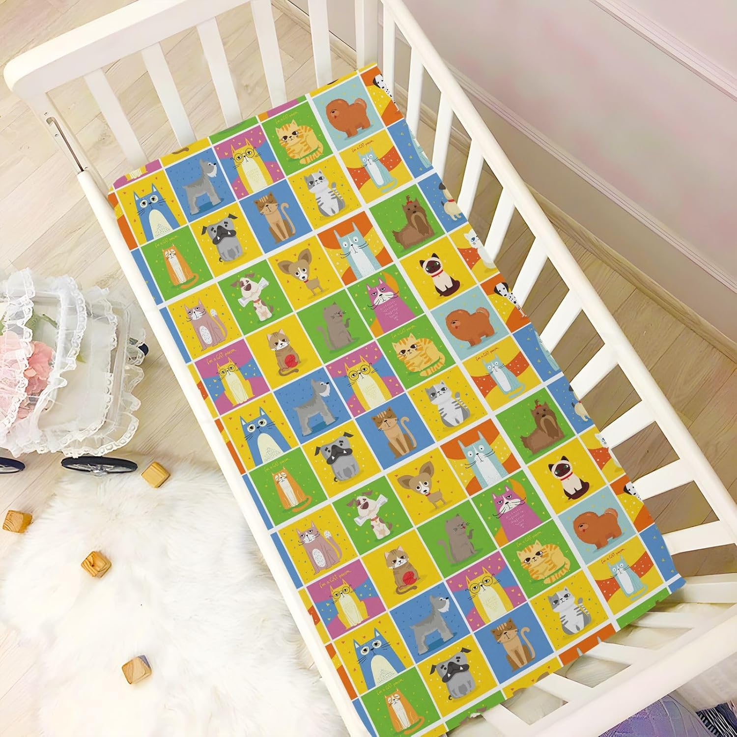unisex fitted baby crib sheets for infant toddler soft nursery bed sheet for cribs and toddler beds 39x27in cool cats and dogsUnisex Fitted Baby Crib Sheets for Infant Toddler Soft Nursery Bed Sheet for Cribs and Toddler Beds 39x27in Cool Cats and Dogs