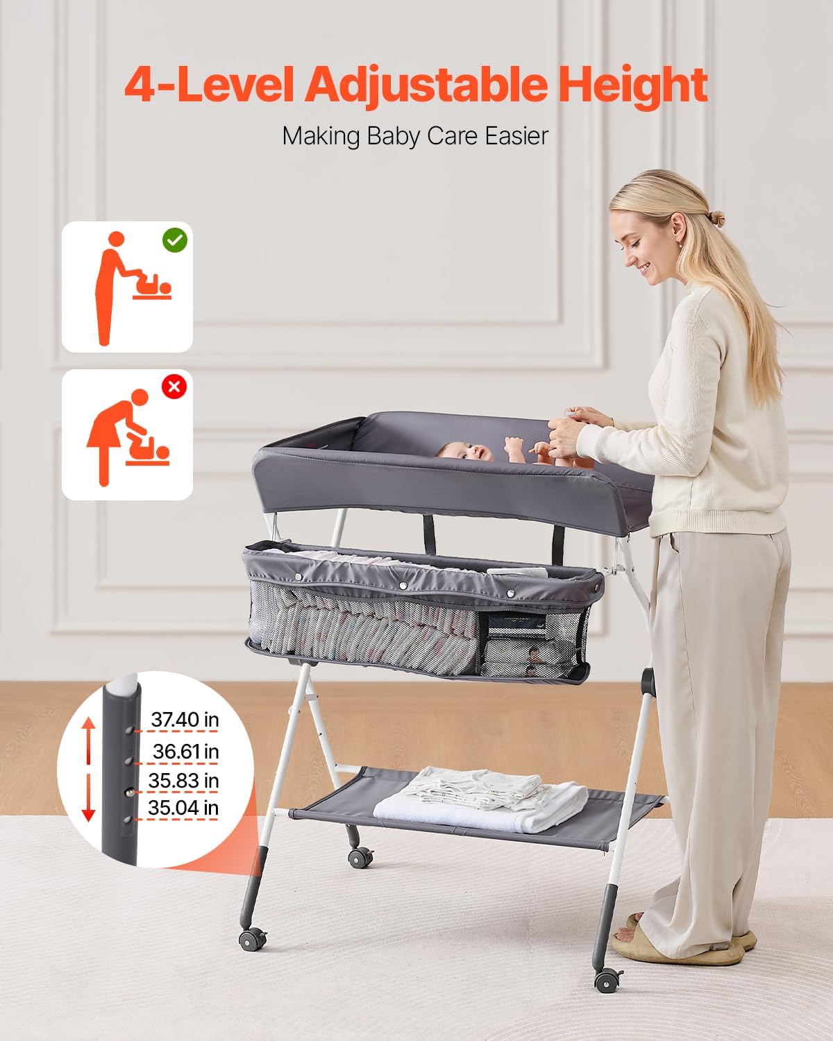 VEVOR Baby Changing Table, Foldable Diaper Change Station with Side Basket, Adjustable Height Portable Changing Table with Lockable Wheels, Multi-Functional Storage Organizer Nursery, Dark Gray