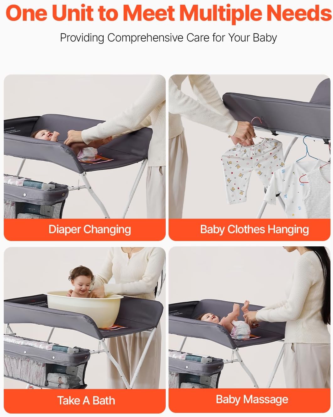 Durable Materials: Made with premium materials, the diaper changing table features Oxford fabric panels that are waterproof, wear-resistant, and easy to clean, ensuring a better user experience and long-lasting durability