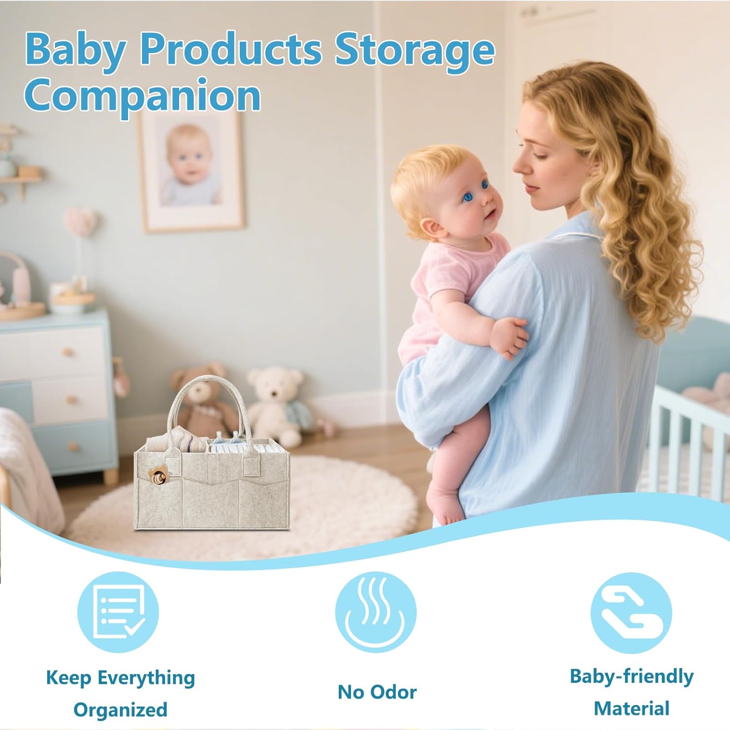 Premium Quality: Made from high quality, environmentally friendly felt, our Baby Nappy Organiser is safe and free from hazardous materials. High quality felt material that perfectly eco-friendly and safe for your baby