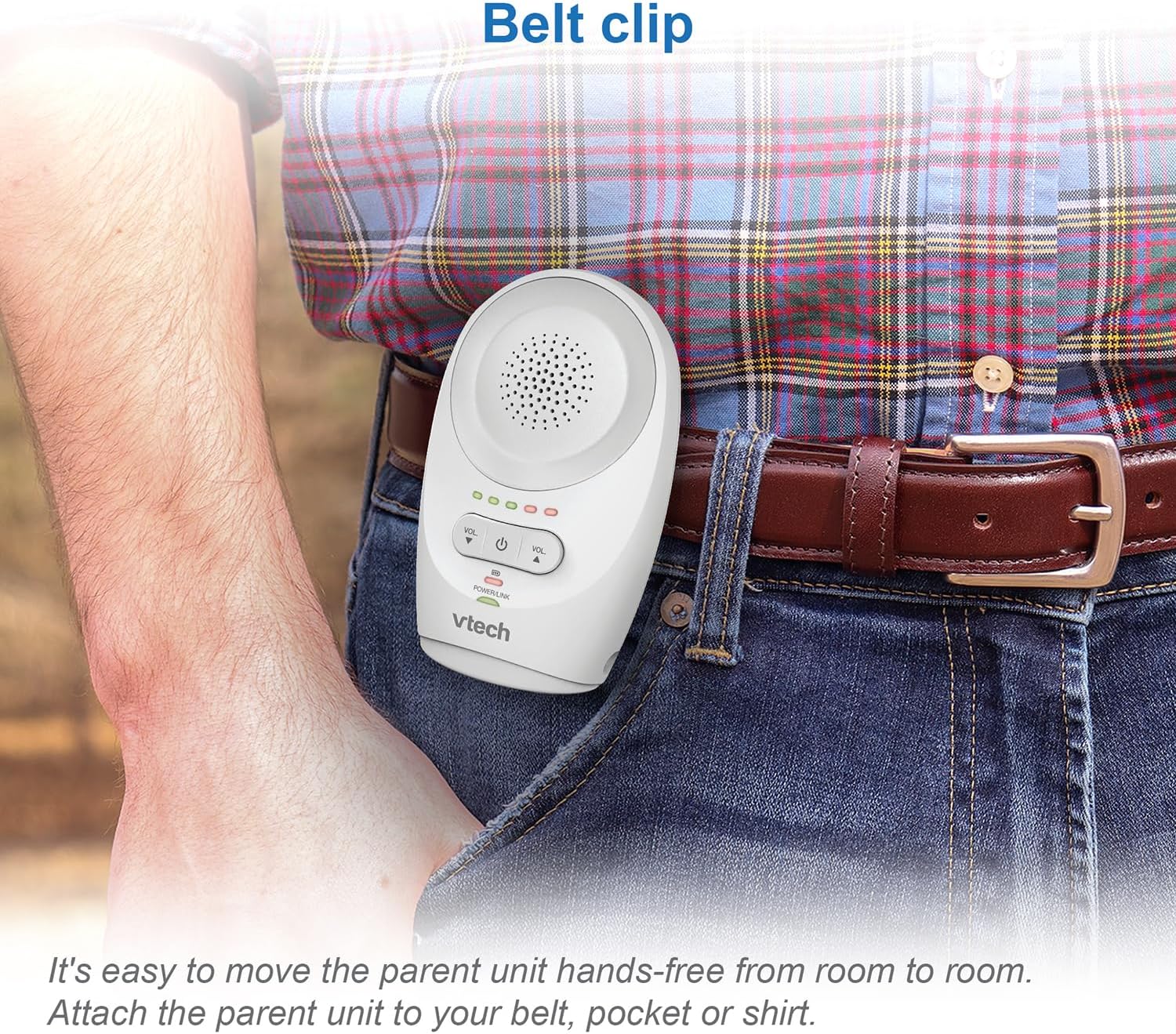 Convenient to use: thanks to the practical belt clip, the parent unit can be easily taken anywhere. With practical volume control
