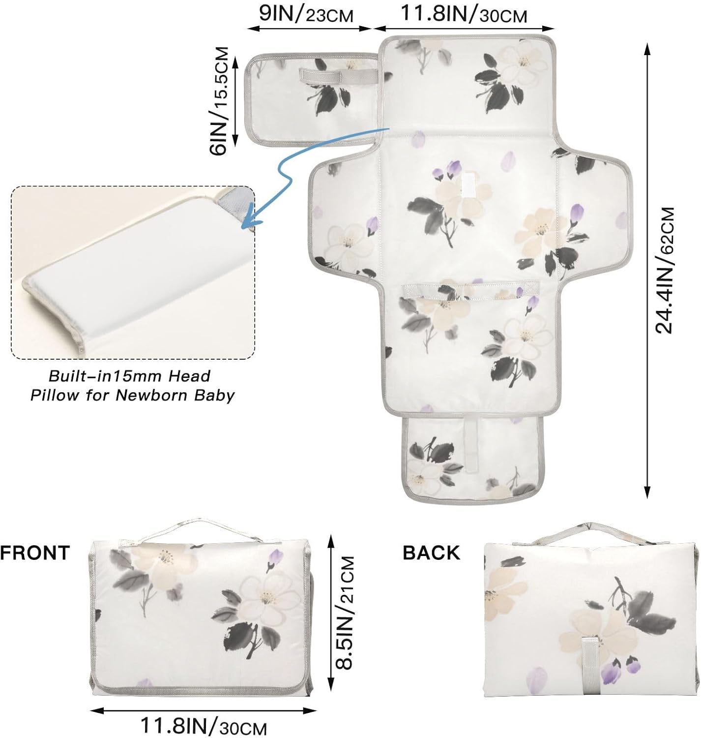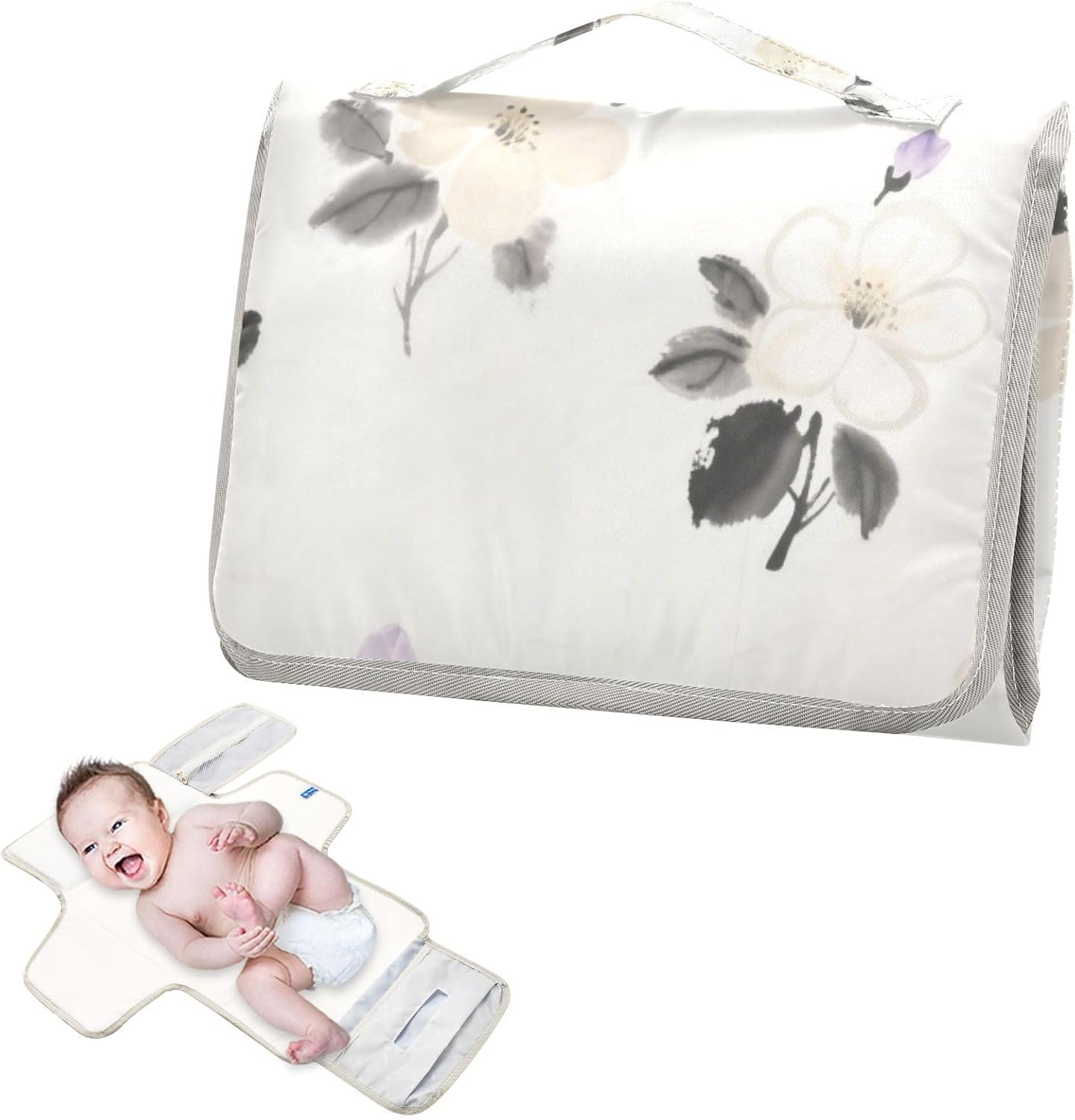 White Ink-wash Flowers Reusable Baby Changing pad with Tissue Pocket Portable Changing pad for Baby Infant Travel Station Kit cambiadores de pa?ales para Bebes