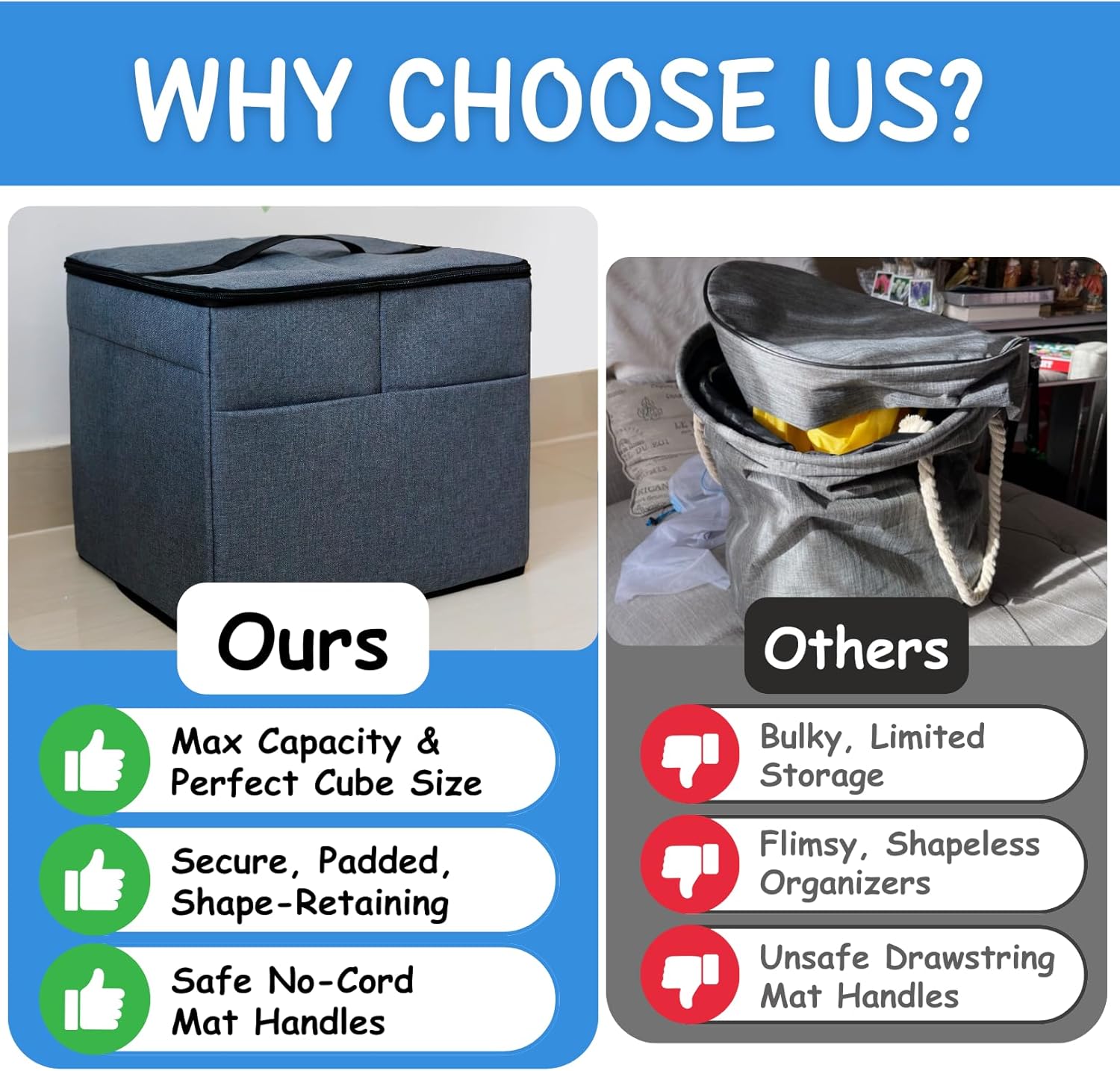 FITS DICE SHELF Say goodbye to these flimsy toy storage bags and take order to the next level. Our storage box has reinforced yet soft walls and fits a standard cube shelf.