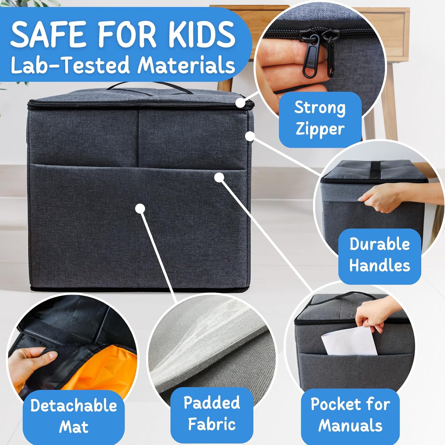QUICK CLEANING Transform your kids’ playroom in no time at all. Our kids storage organizer for toys has a kid-friendly slim zipper and is perfect for storing or taking with you for family outings.