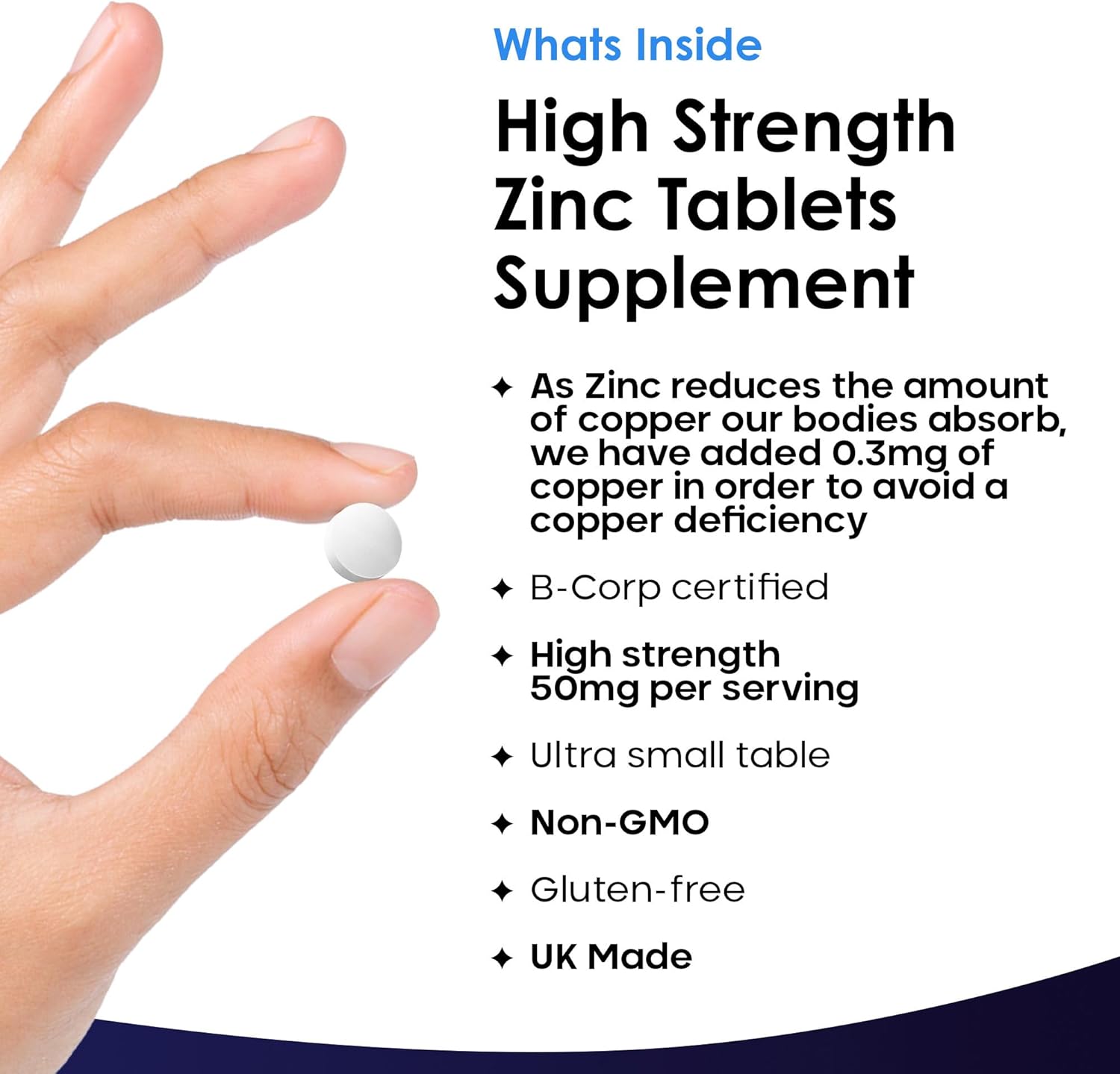 zinc 50mg high strength tablets with copper, pure zinc supplements contributes towards the immune system, bone health and fertility, vegan, non gmo, made in uk by new leaf 120 tabletsZinc 50mg High Strength Tablets with Copper, Pure Zinc Supplements Contributes Towards The Immune System, Bone Health and Fertility, Vegan, Non-GMO, Made in UK by New Leaf 120 Tablets